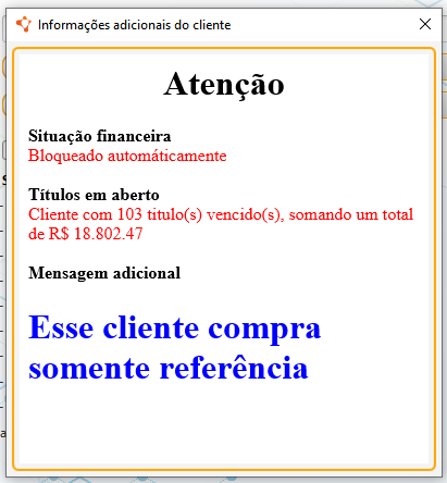 <h1 style=“color:red;”>Esse cliente compra somente referência</h1>