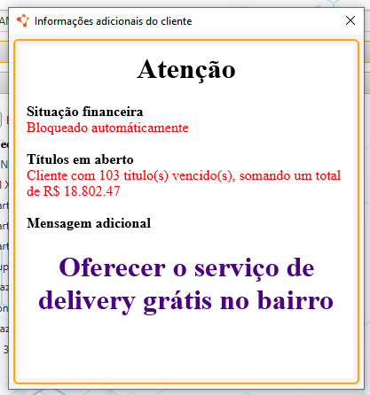 O campo no cadastro do cliente tem por objetivo principal exibir a mensagem ali inserida na venda NFCe. Então, basta configurar uma mensagem ali que toda vez que selecionar um cliente, ela será exibida.