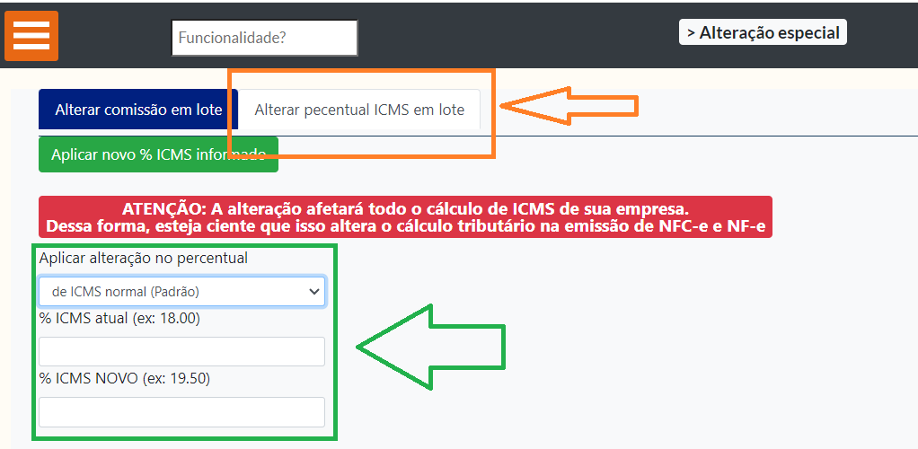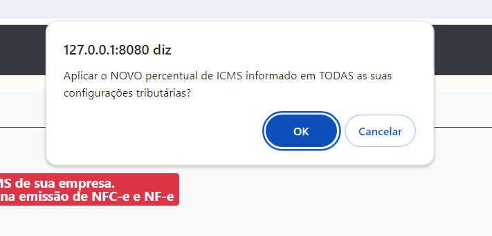 Para alterar o percentual de ICMS de todos os tributos, basta executar os seguintes passos