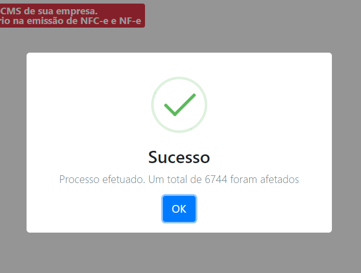 Se tudo processado com sucesso. A partir de agora, sua configuração tributária fora alterada do percentual X para o percentual Y.