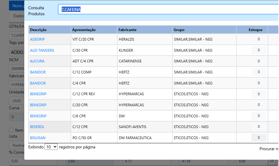 Consultando produtos T.CAFEINA