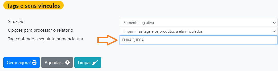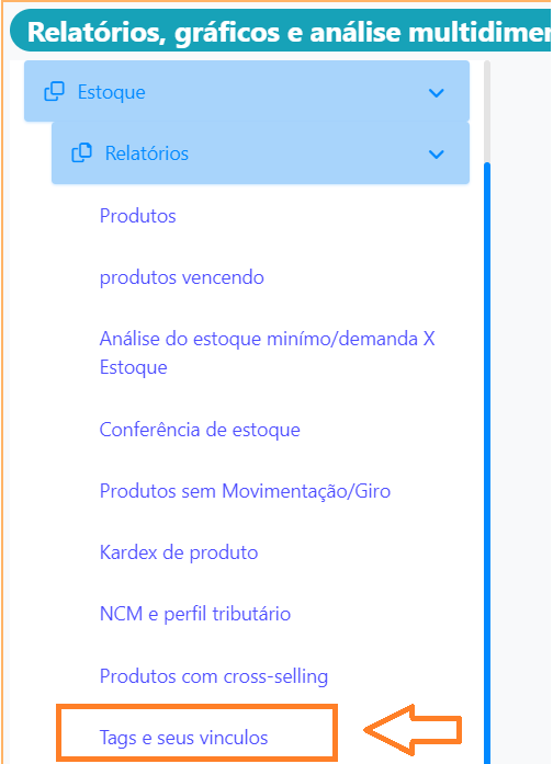Caso seja a vontade analisar quais tags possuem mais vínculos ou quais produtos estão a ela vinculada, fora criado um relatório para tal finalidade.