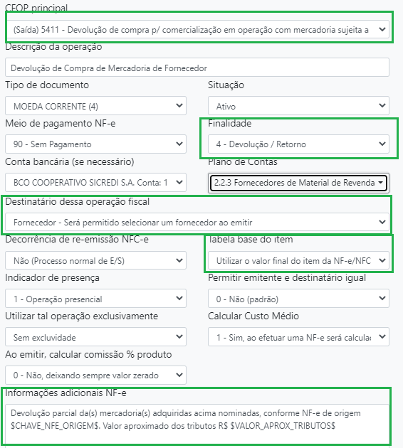 Conferir os valores conforme Protocolo de Devolução de Mercadorias ou Espelho de devolução emitido pelo fornecedor com os valores que ele aguarda.