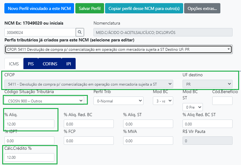A próxima etapa será configurar os NCM vinculados ao(s) produtos ST que serão devolvidos .