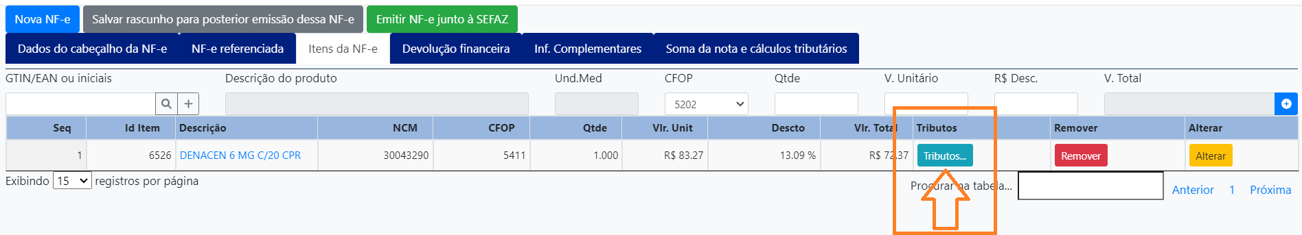 Conforme imagem acima, caso deseje alterar algum valor, basta clicar em Tributos, deixando os valores conforme sugestionado pelo seu fornecedor.