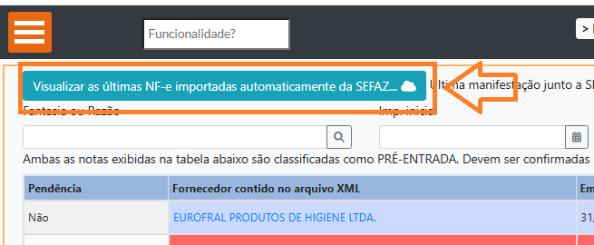Clicando no botão de comando AZUL, o LivePharma comunica a SEFAZ que tal NFe foi reconhecida e dentro de 1(uma) hora, efetuará seu download automático, lançando-a como “pre-entrada”.
