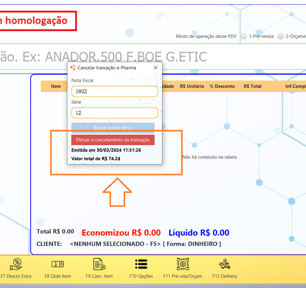 Observação: O cancelamento de uma transação E-PHARMA NÃO tem relação alguma com o cancelamento do CUPOM FISCAL NFCe, que deve ser executado nos tramites legais já estabelecidos. Ou seja, cancelou uma transação e-Pharma, cancele ou efetue a devolução do cupom fiscal também
