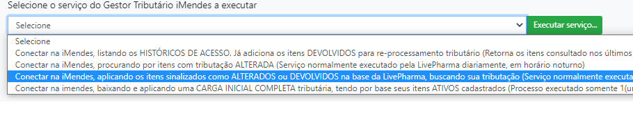 Dessa forma, o Gestor Tributário iMendes e suas equipes disponibilizam uma função que retorna os itens que tiveram a tributação alterada, permitindo sua importação e carregamento correto no aplicativo LivePharma.