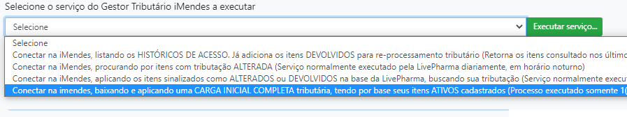 Essa carga inicial deve ser executada em período noturno e com prévio agendamento da LivePharma, vez que será selecionado qual CFOP será executado e quais UF serão contempladas.