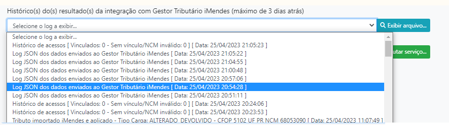 Mas se o Gestor da Farmácia optar em executar manualmente em período noturno, basta acessar → PARÂMETROS → INTEGRAÇÕES → LOGs GESTOR TRIBUTÁRIO IMENDES.