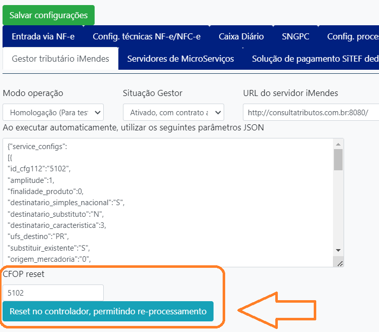 id_cfg112 = CFOP que importará a carga inicial e processará as alterações tributárias listadas pela iMendes.