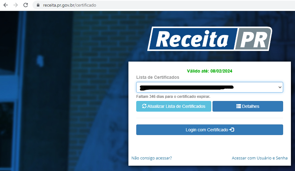 Deve aparecer uma tela conforme imagem abaixo. Agora basta clicar em “Login com Certificado” e finalizar a geração do CSC.