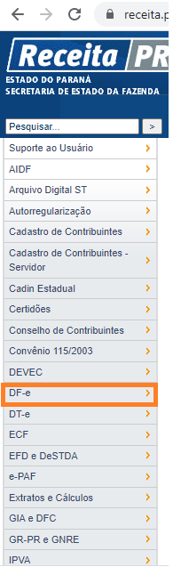 Agora acesso SITIO da SEFAZ/PR para gerar o CSC.