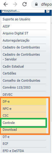 Acesso o menu lateral esquerdo, clicando em DF-e