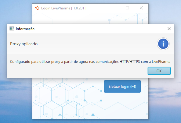 O proxy já vem configurado pela LivePharma, mas se sua empresa optar em utilizar algum proxy específico e temporário de 1 (um) dia, basta criar um arquivo chamado
