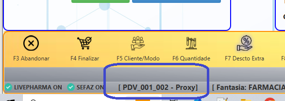 Após o login, terá uma escrita em sua tela, semelhante a imagem abaixo, indicando que o PDV está funcionando com proxy.